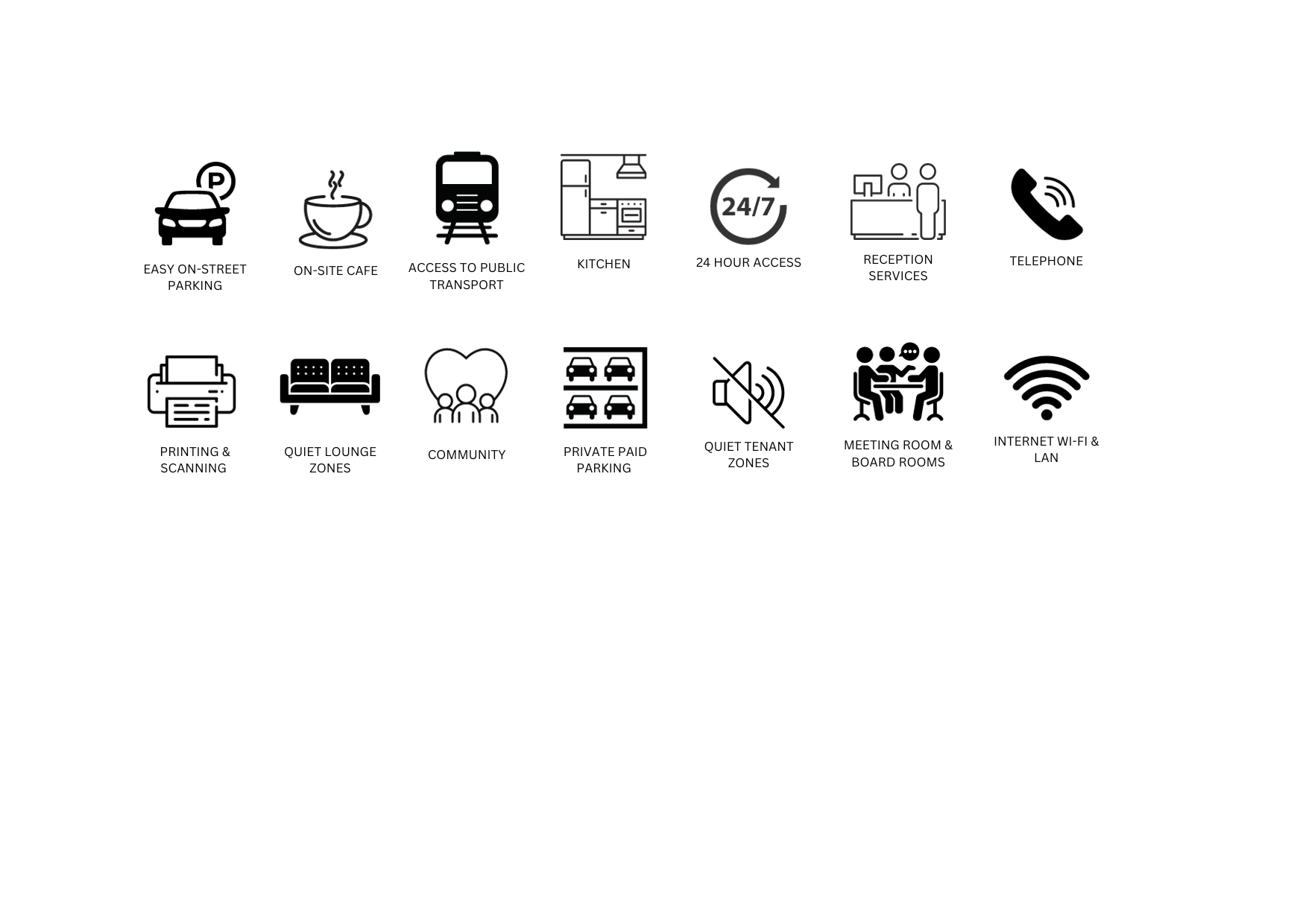Enjoy the use of two beautifully appointed boardrooms and six uniquely designed meeting rooms, with high speed internet connection throughout the building, full time co-ordinators to personally assist you and welcome your guests, plus an in-house cafe, you’ll have everything you need to conduct business seamlessly.